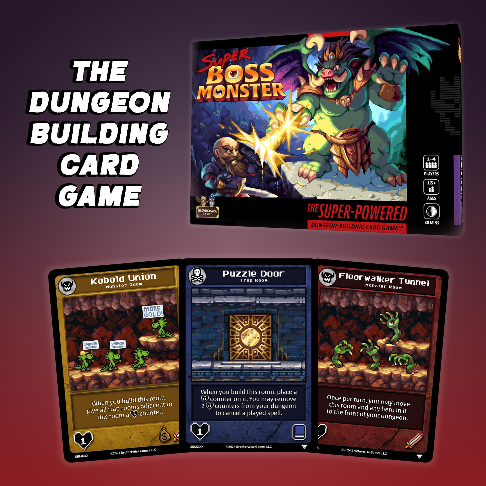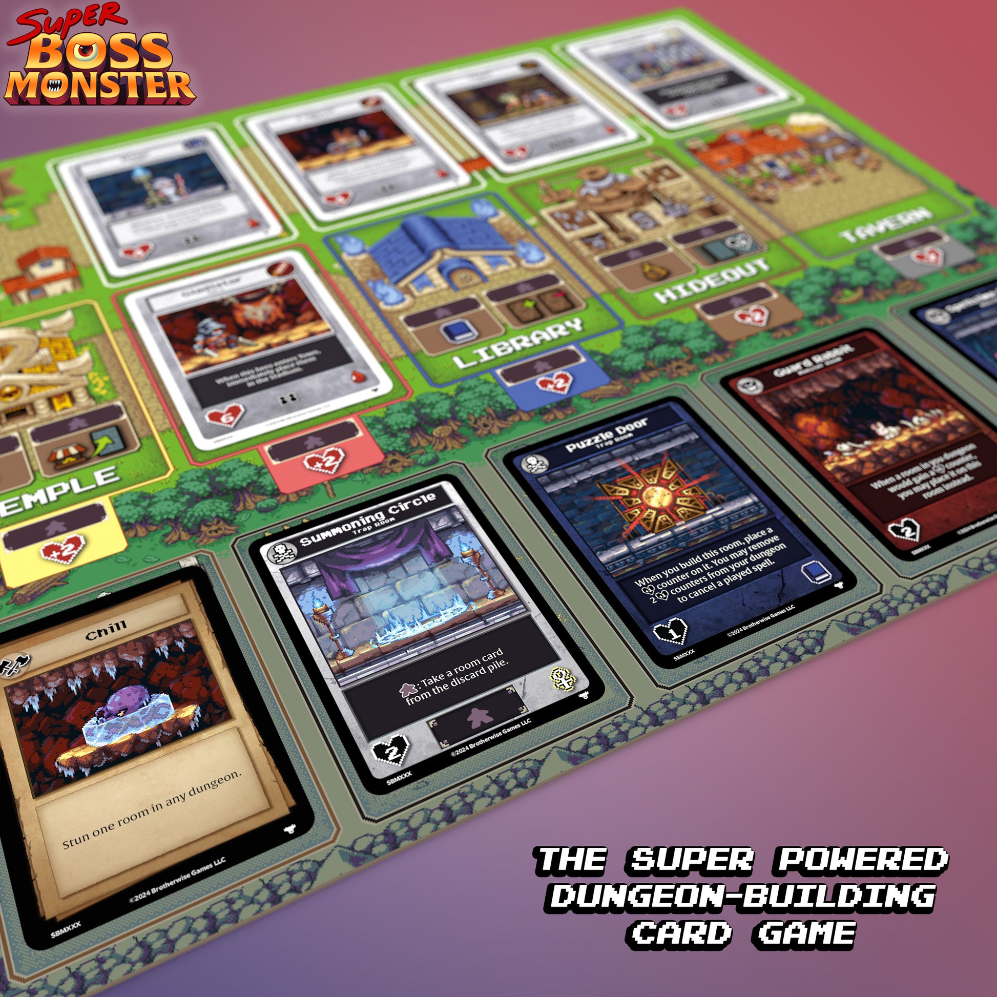 For ten years, one Boss Monster has reigned supreme. But change is inevitable, and now a final Boss has taken the field! Super Boss Monster is the next evolution of the famed Boss Monster series of games. Fully backward compatible with previous Boss Monster expansions, Super Boss Monster super-charges your game with a central town board and player action selection. Just like the original Boss Monster, your job is to build the perfect dungeon to lure and destroy pesky heroes.